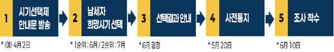국세청이 4월부터 전면 시행하는 정기 세무조사 시기선택제는 정기조사 대상자로 선정된 납세자가 안내문을 받고 3개월 범위 내에서 월 단위(1·2순위)로 조사 시기를 선택하는 것을 말한다. 조사 시기를 선택하면 실제 조사 착수 20일 전까지 기존과 같이 정식 사전통지도 받게 된다.