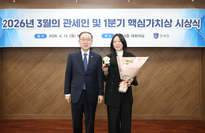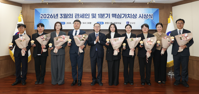 관세청은 13일, 2026년 3월의 관세인 및 업무 분야별 유공자와 2026년 1분기 핵심가치상 수상자를 선정해 시상했다고 밝혔다.