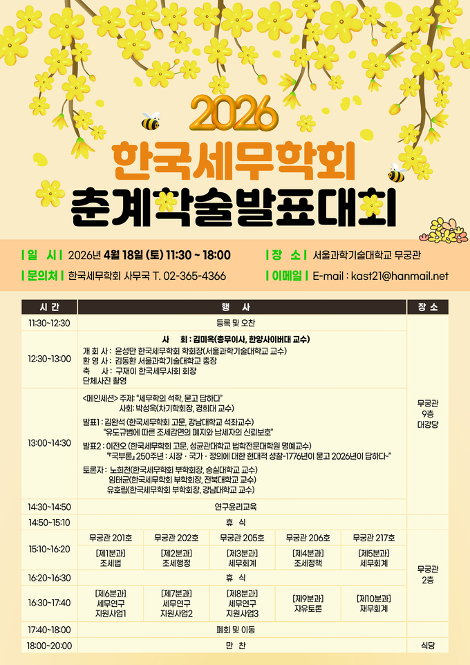 이어 “조세 분야 연구자와 실무자, 학생 등 많은 분들이 참여해 의미 있는 논의의 장이 되길 바란다”고 덧붙였다.