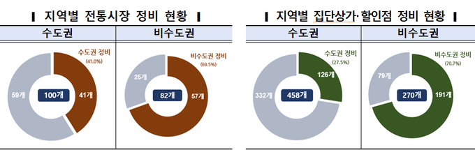 집단상가·할인점은 총 728개 가운데 317개(43.5%)를 정비했으며, 소비 위축에 따른 상권 쇠퇴와 공실dbf 및 폐업률 등을 고려해 비수도권은 270개 중에서 191개(70.7%)를 정비해 간이과세를 적용받을 수 있는 길을 열었다.