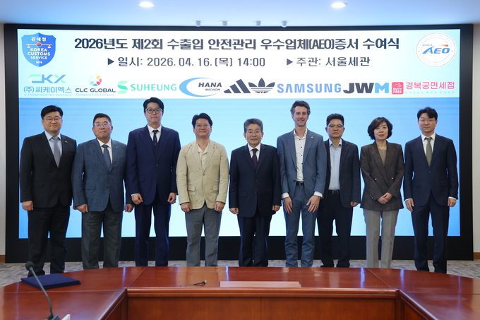 서울본부세관(세관장·김용식)은 16일 청사 대회의실에서 2026년 제1회 관세청 AEO 심의위원회 심의를 거쳐 공인을 획득한 21개 업체에 수출입 안전관리 우수업체(이하 AEO) 공인증서를 수여했다.