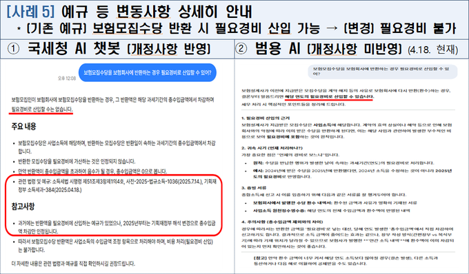사례로 살펴보면, 국세청 AI 챗봇은 개정세법 등을 신속하고 정확하게 반영해 납세자에게 보다 신뢰성 높은 답변을 제공하고 있다.
