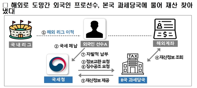K리그와 한국프로야구에서 뛰었던 외국 용병들의 세금 체납 소식이 간간이 들려온다. 국내에서 프로 생활을 하면서 고액 연봉을 받는 용병들의 이른바 ‘먹튀’에 대해 국세청이 철퇴를 내렸다. 해외로 도망간 외국 프로선수의 본국 과세당국을 통해 금융계좌를 확보해 체납한 세금을 모두 받아낸 것.
