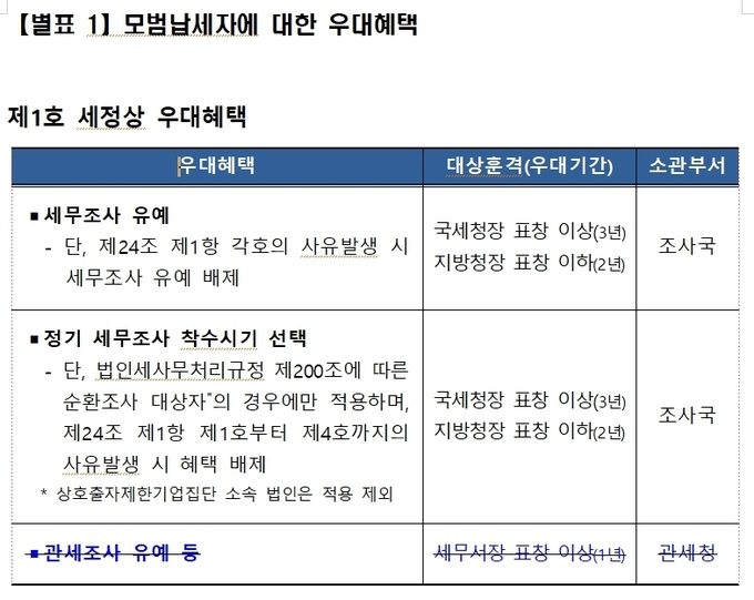 이밖에 모범납세자 우대 혜택 배제와 선정 취소의 개념을 명확하게 구분하기 위해 선정 취소 규정도 신설됐다.
