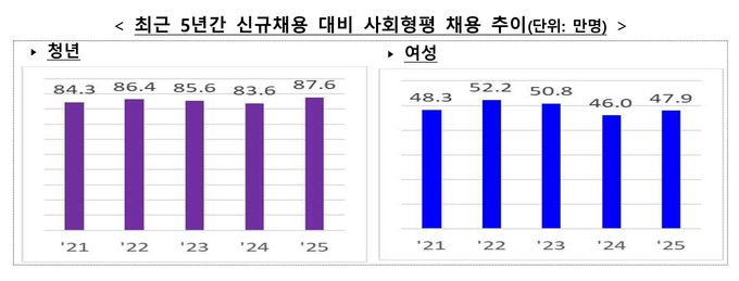 신규 채용 대비 청년·여성·지역인재 등 사회형평 채용 비중도 개선됐다. 청년 채용은 정원 대비 6.2%, 장애인 채용은 상시근로자 대비 4.2%, 이전지역 인재 채용은 의무화대상 채용인원 대비 40.8%로 법적 고용의무비율을 웃돌았다.