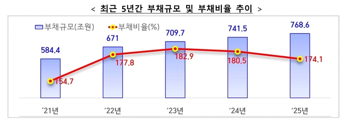 작년말 부채비율 174.1%…전년 대비 6.4%p 감소