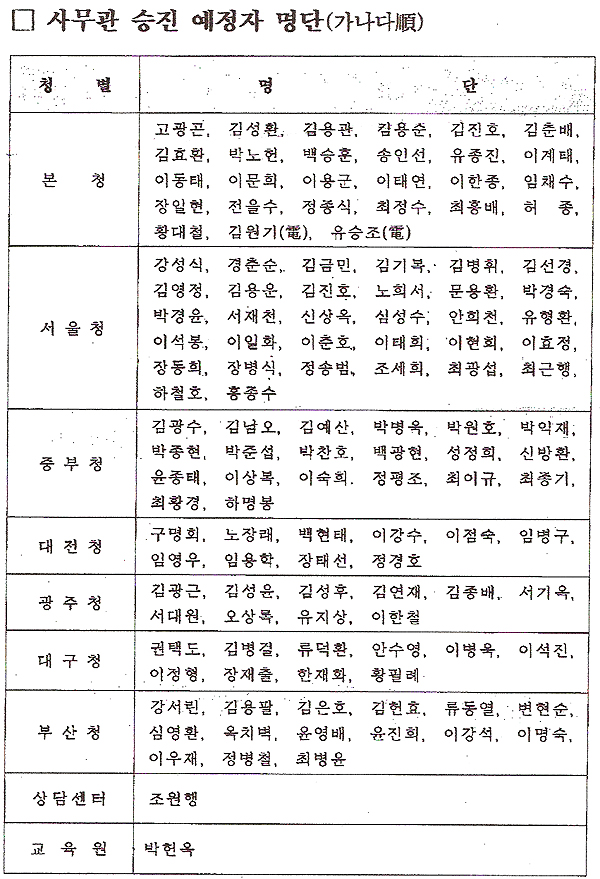 국세청 6급 이하 직원 승진인사 명단[국세청]
