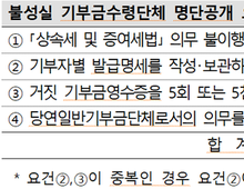 거짓 기부금영수증 발급 등 불성실 기부금수령단체 24곳 2억 이상 조세포탈범 50명…해외금융계좌 신고의무 위반 4명 거짓세금계산서 발급 등 세금계산서 발급의무 위반자 22명 불성실 기부금수령단체, 조세포탈범, 해외금융계좌 신고의무 위반자, 세금계산서 발급의무 위반자 등 세법을 위반한 100명의 명단이 공개됐다. 국세청은 12일 국세정보위원회의 심의를 거쳐 세법 위반자의 인적사항 등을 누리집(www.nts.go.kr)을 통해 공개했다. 공개된 불성실 기부금수령단체 24곳은 실제 기부금 수령액보다 많은 금액으로 거짓 기부금영수증을 발급했거나, 출연자 또는 그의 특수관계인을 임·직원으로 고용하는 등 상증세법 위반으로 1천만원 이상 세액을 추징당한 단체가 공개 대상이다. 공개된 불성실 기부금수령단체 가운데 거짓 기부금영수증을 최다 발급한 단체의 경우 309회에 걸쳐 22억 4천47만원의 거짓 영수증을 발행하는 등 의무불이행으로 인한 추징세액 최고액이 1억6천504만원에 달한다. 이들의 공익사업 유형별로는 종교단체가 16개(67%)가 가장 많고, 교육단체 3개(13%), 의료법인 2개(8%), 사회복지단체 2개(8%), 예술문화단체 1개(4%) 순이다. 사기나 그 밖