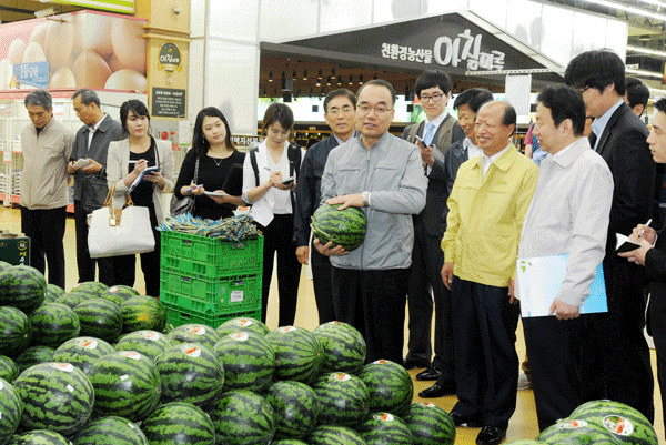 박재완 기획재정부 장관이 18일 서울 양재동 하나로 마트에서 물가관계장관회의를 물가동향을 점검했다. 이날 회의에서 박 장관은 “불안한 대외 여건 속에서도 경기 회복 흐름을 유지하려면 물가 안정 기조 정착이 매우 중요하다"고 강조했다. [사진2] [사진3]